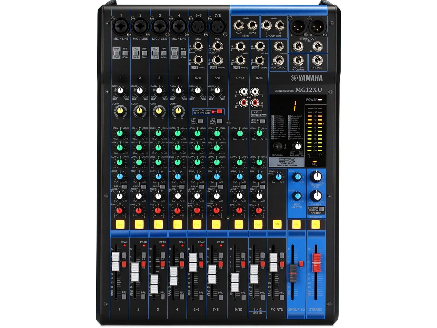 - 8-Input Stereo Configuration Flexible input options for microphones, instruments, and audio sources.